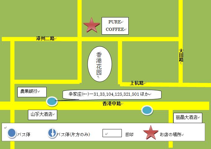 ADD…青島市市南区福山支路22号 TIME…9:00-20:00 TEL…131-7686-3080 銀○ WIFI○ アメリカン26 カプチーノ30 ラテ30 モカ33 |