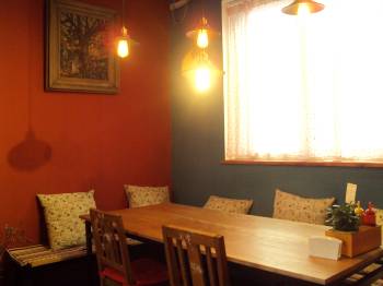 照明はランプやキャンドルを使用していて、店内も薄暗く落ち着いた雰囲気。
