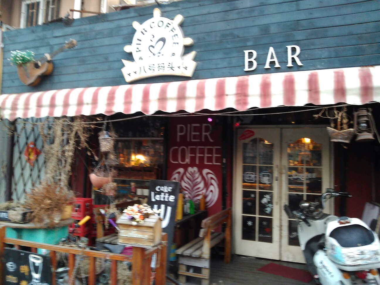 ギターをテーマにしたカフェ。码头咖啡酒吧