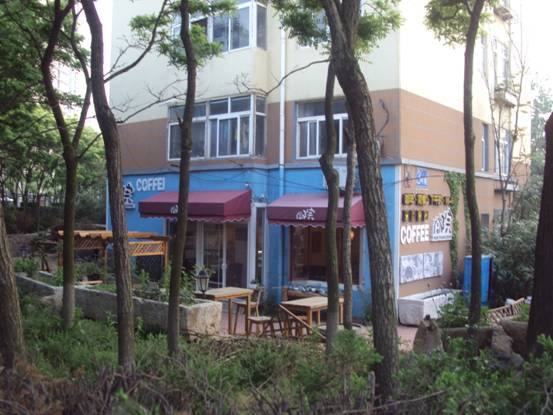 青島大学の向かいにあるカフェ。
