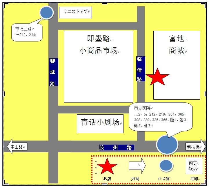 ADD…青島市市北区臨清路 富地商場1階外側