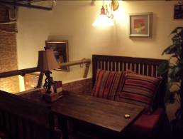 3階には個室もあり、静かなひと時も。階段は、木製のらせん階段で、趣あり。